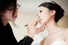 ですがブライダルは写真やビデオといったレンズを通してもきれいに見えなければならないし、披露宴会場では舞台のようにスポットライトの下で遠くからもきれいに見えなければならない。更にはお友達やご親族が至近距離から直接花嫁さんをご覧になることもあるわけですから、これはつまり3つの異なった視点から見て、どの点においてもきれいに見せなければならないということになります。その上で自然光でも室内でもきれい、涙を流しても大丈夫な、長時間もつヘアメイクをして差し上げる事、それは実はとっても大変な事なのです。ですが同時にそれはとってもやりがいのある仕事でもあります。